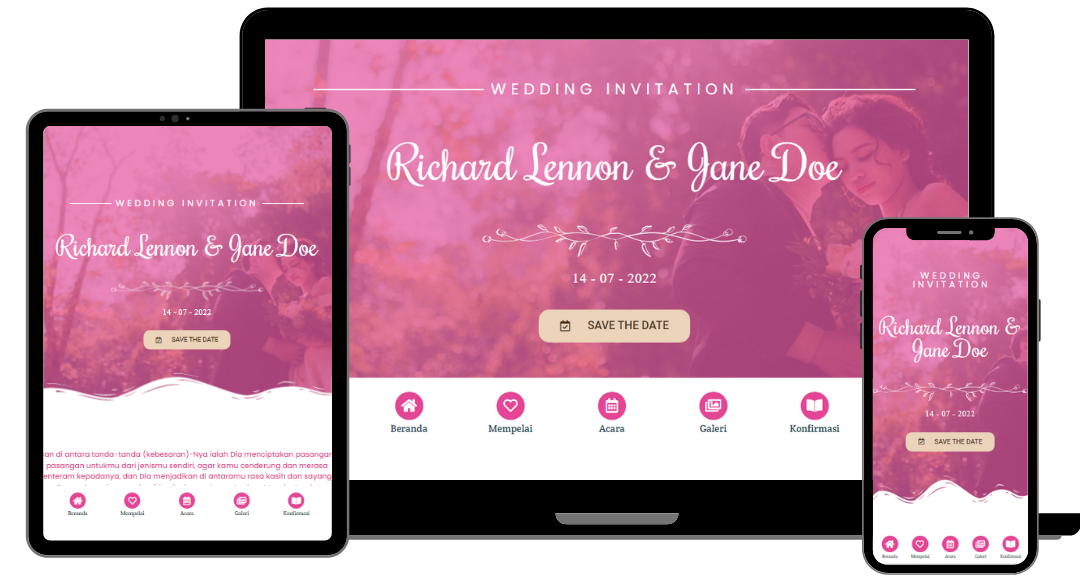 Desain Kekinian Banget & Responsif, Membuat Pernikahan Anda Makin Berkesan & Dikenang di Semua Perangkat Digital.