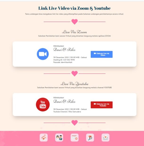 Rp25.000Link Live Streaming adalah fitur untuk menampilkan link saat acara pernikahan dimulai bagi yang tidak bisa hadir langsung ke acara.