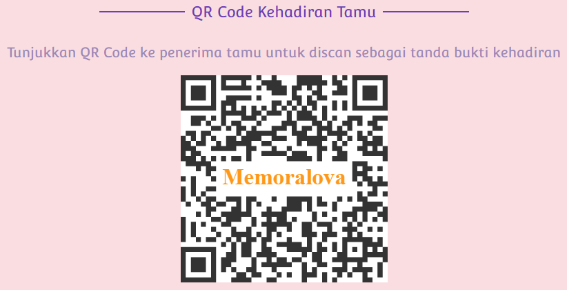 Rp50.000QR Code Kehadiran Tamu adalah fitur untuk buku tamu online yang memudahkan para tamu saat datang ke acara pernikahan tanpa harus menulis lagi di buku tamu. Penggunaannya cukup mudah yaitu dengan menggunakan aplikasi scan QR Code di HP, maka saat tamu menunjukkan QR Code-nya dan discan, akan secara otomatis tercatat di database panitia pernikahan. Hal ini tentu saja akan mengurangi kontak dengan barang-barang yang dapat terkontaminasi Covid-19 seperti kertas buku tamu maupun pulpen.